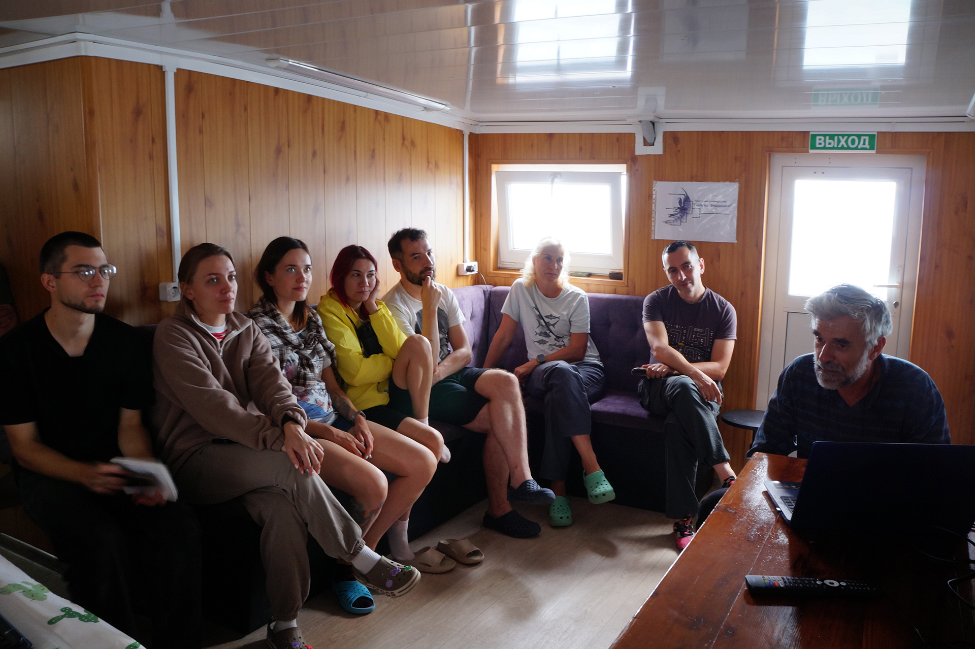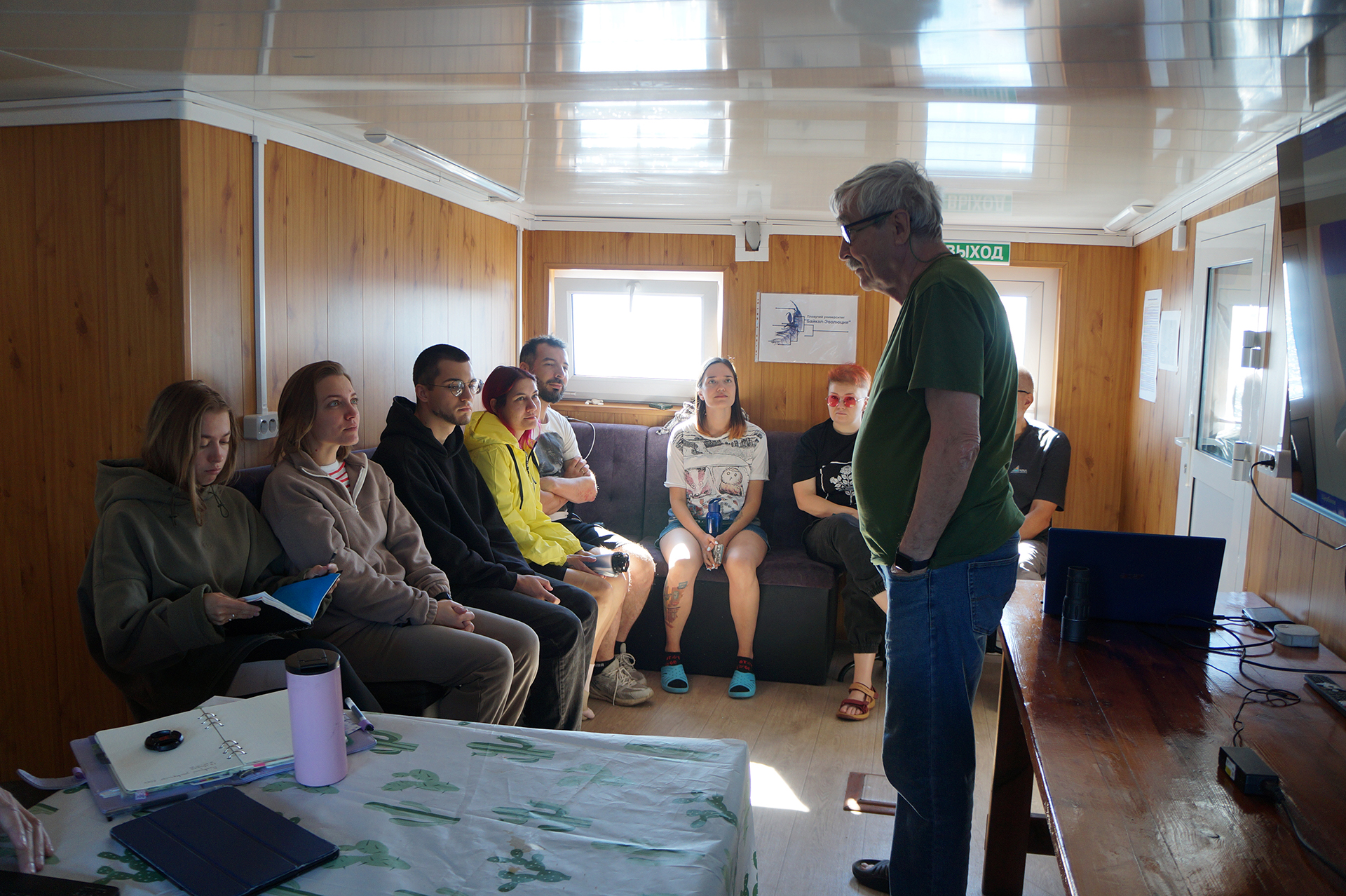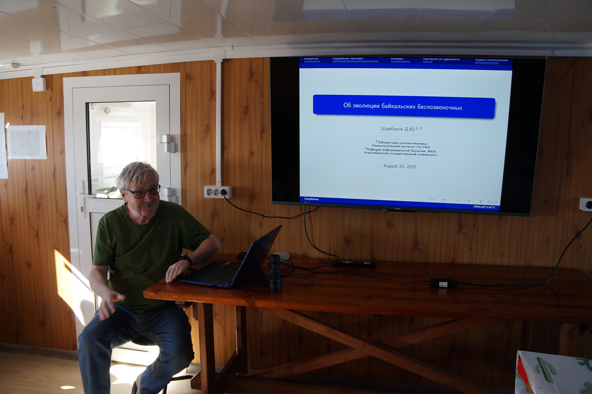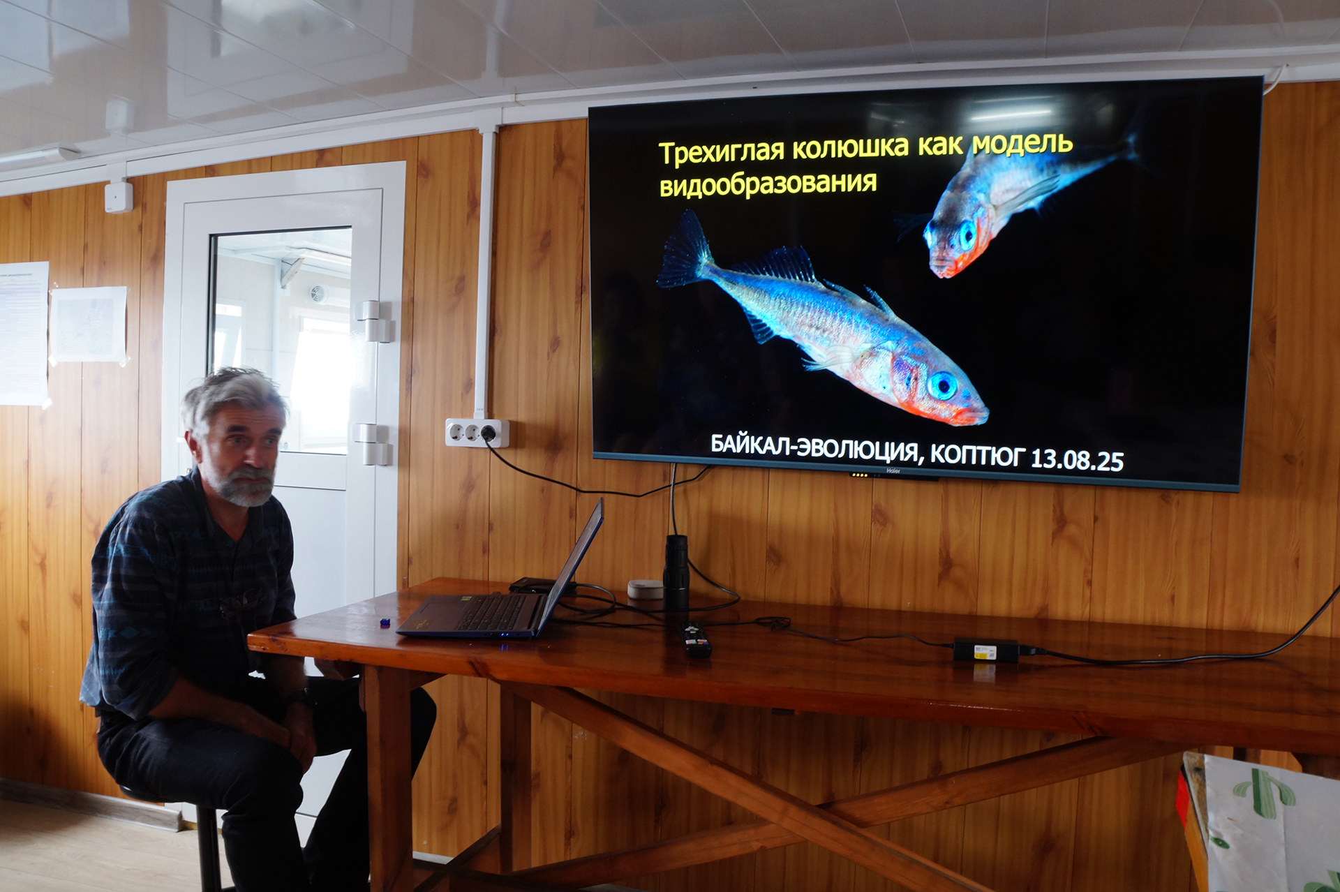 Руководитель экспедиции Д.Ю. Щербаков открыл школу, представив вводную лекцию. В своём выступлении он дал общий обзор ключевых характеристик озера. Щербаков рассказал о его гидрологических особенностях, уникальных экосистемных чертах и биологическом разнообразии. Участники школы ознакомились с эндемичными группами организмов, такими как амфиподы, полихеты и моллюски рода Baicalia, а также с аспектами их эволюционной истории. Были детально рассмотрены проблемы несоответствия ядерных и митохондриальных филогенетических деревьев, механизмы вселения видов, ремолдинг tRNA у амфипод и результаты интрогрессии у различных таксономических групп. В лекции подчеркнуто, что Байкал — уникальный природный объект для изучения эволюционных процессов и адаптации организмов.