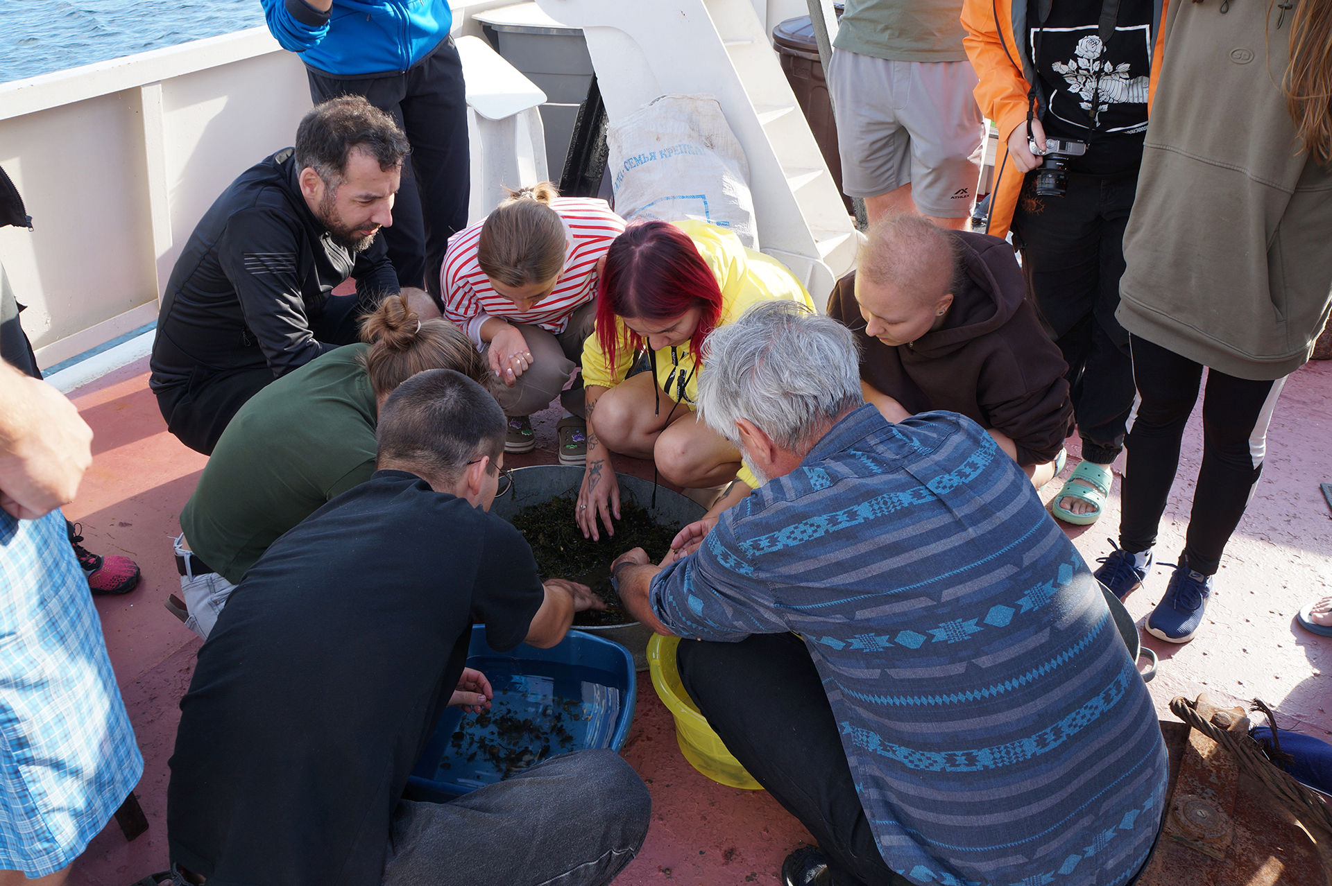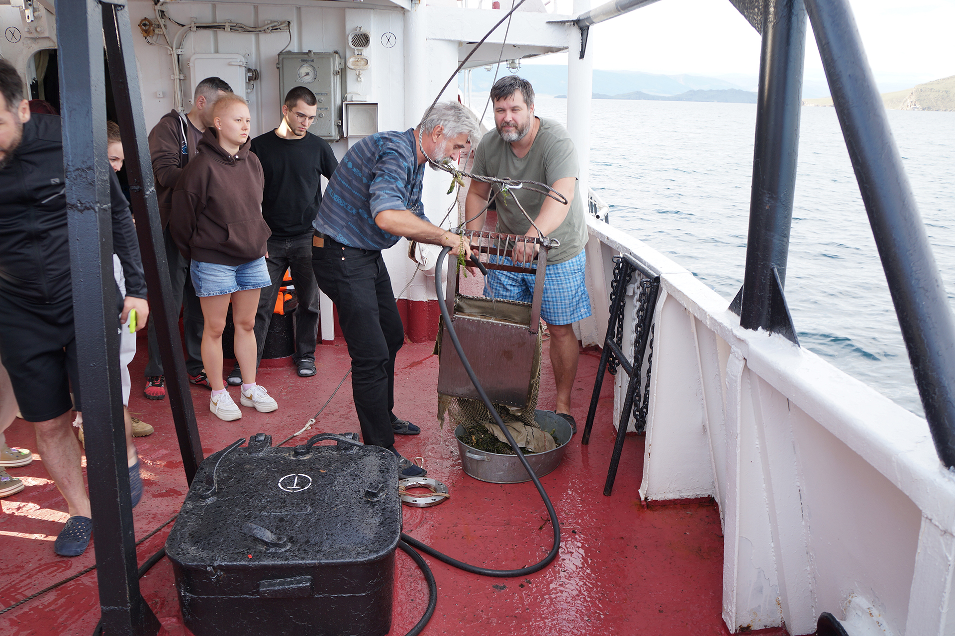 В районе Ольхонских ворот было проведено траление с использованием драги на глубинах 23 м (53.028619, 106.0904854) и 27 м (53.020725, 106.899910). Собранные образцы двустворчатых моллюсков (Bivalvia), амфипод (Amphipoda), губок (Porifera) были зафиксированы в 70% этаноле для последующего анализа в лаборатории. Вечер завершился праздничным ужином и неформальным общением, где участники поделились своими ожиданиями от школы.