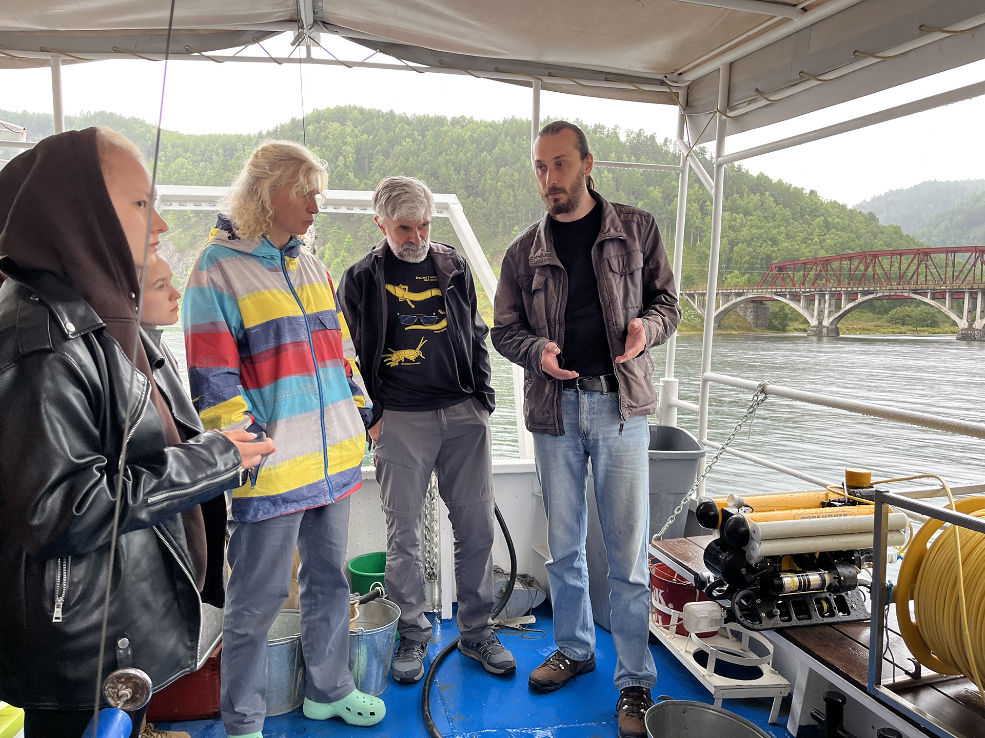 После лекции участники работали с подводным дроном ( 51.799568, 104.402586) на НИС "Папанин". Кучер К.М. предоставил исчерпывающий анализ конструктивных особенностей и эксплуатационных нюансов данного высокотехнологичного устройства. В своем выступлении он детально рассмотрел ключевые технические параметры аппарата, акцентируя внимание на сложных механизмах его функционирования и специфических условиях эксплуатации. Он также осветил важные аспекты взаимодействия с оборудованием, включая рекомендации по оптимизации рабочих процессов и предотвращению потенциальных неисправностей. Дрон использовался для глубоководной фото- и видеосъемки и и мониторинга прибрежных зон. Это дало возможность участникам получить практический опыт использования современных технологий в экологических исследованиях.
