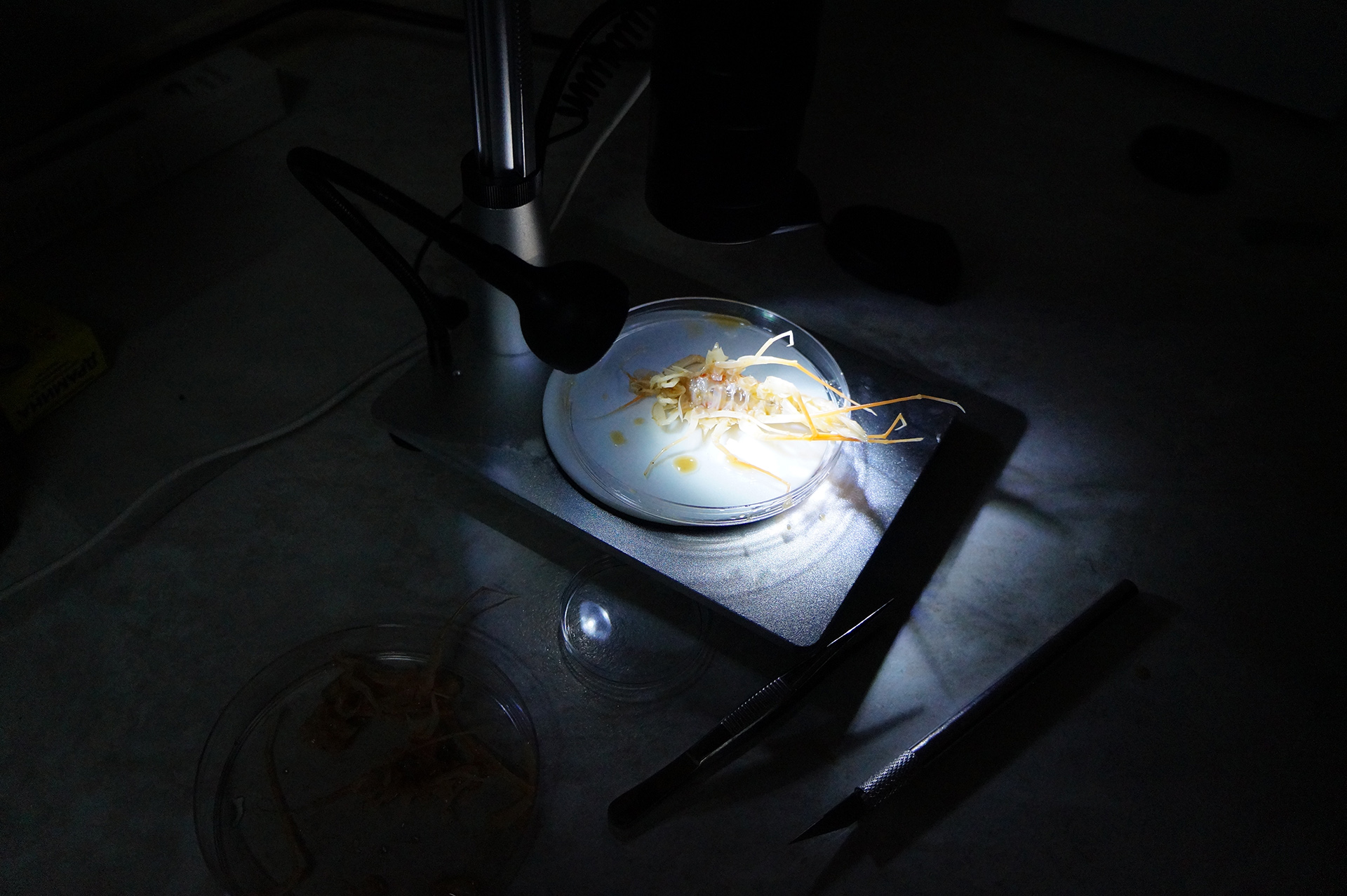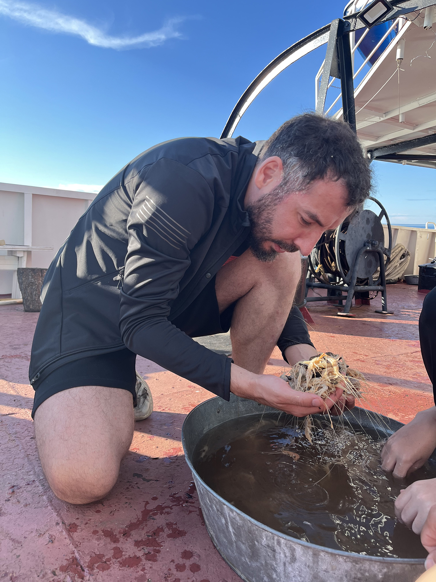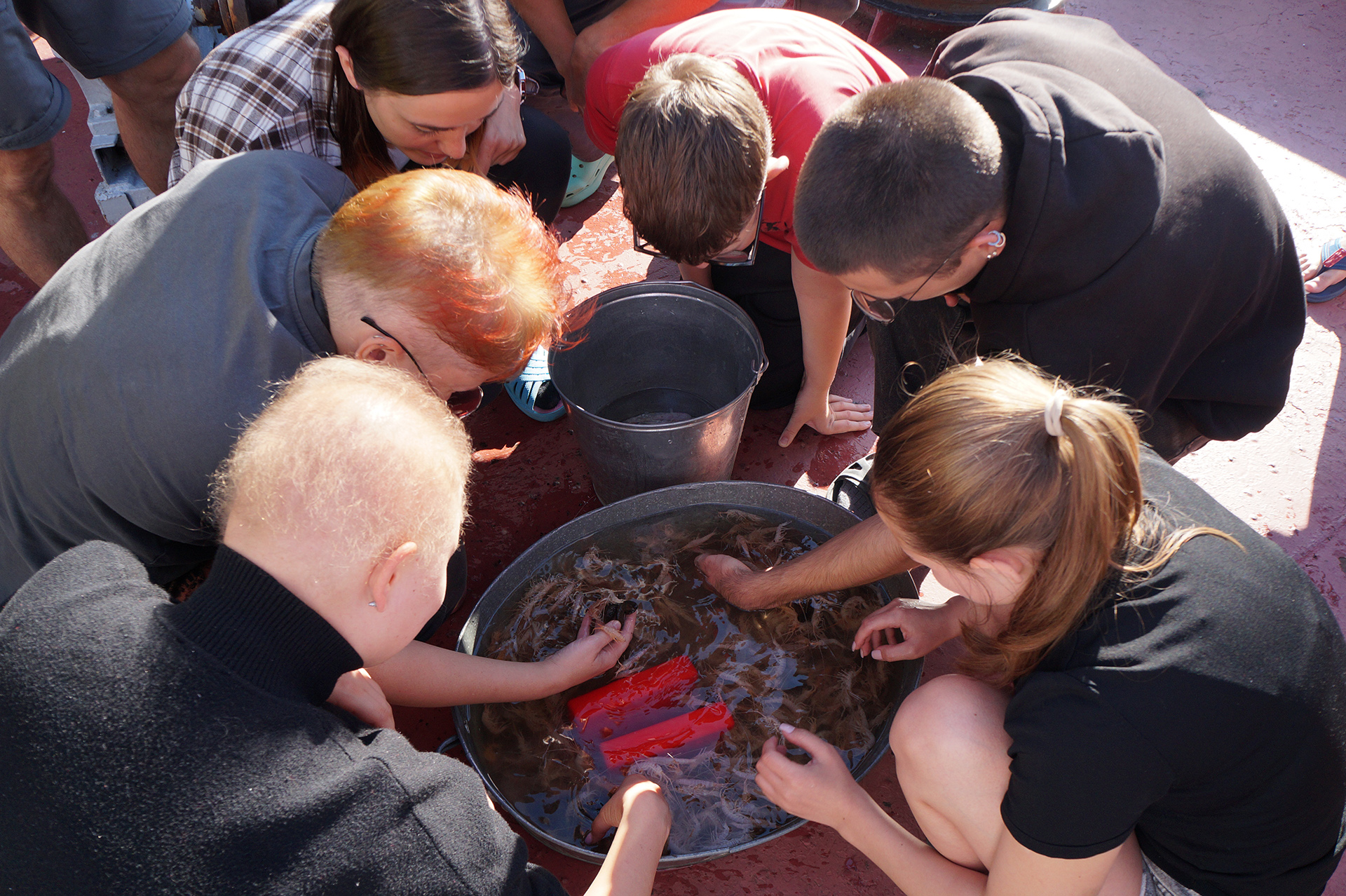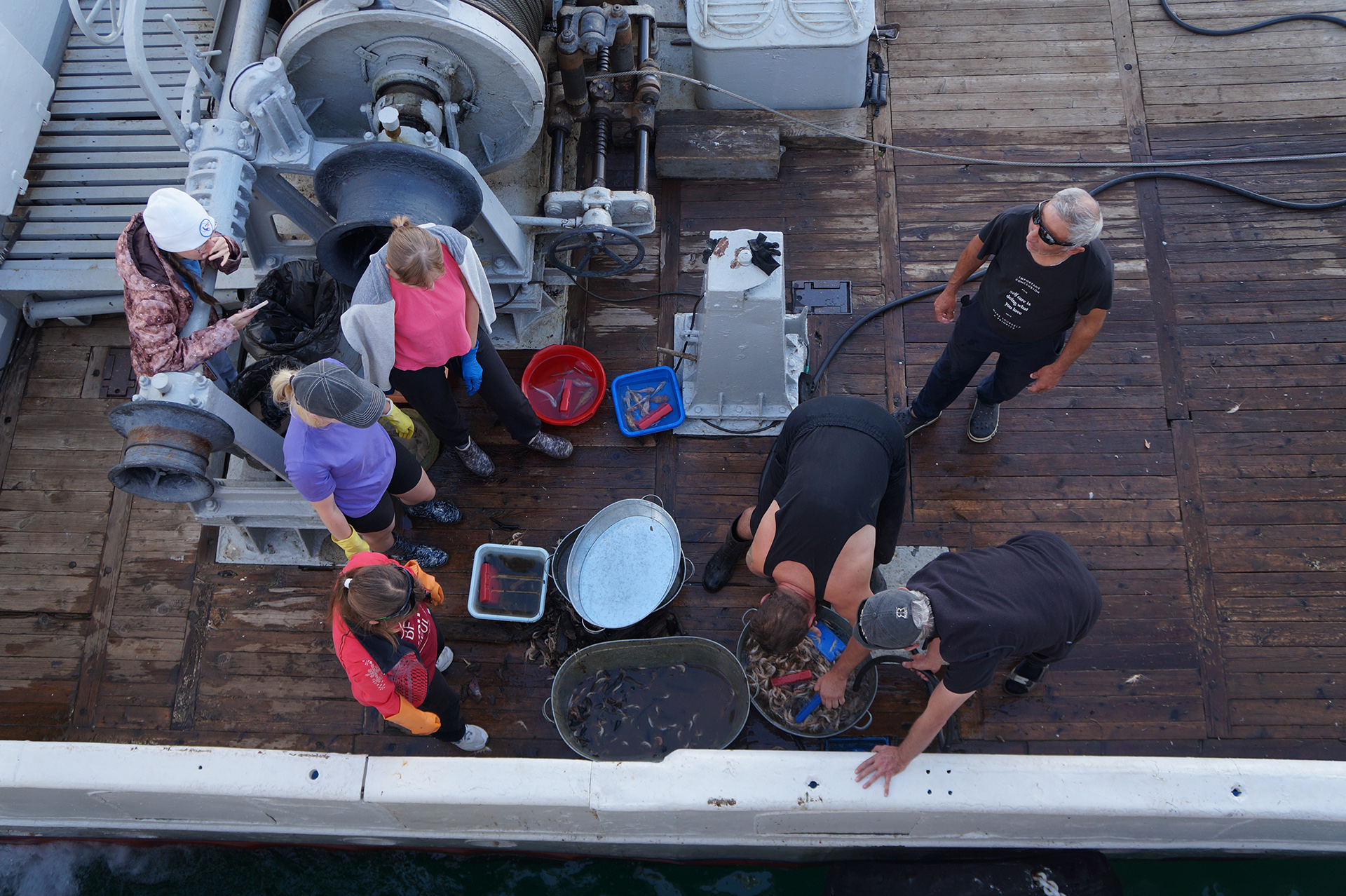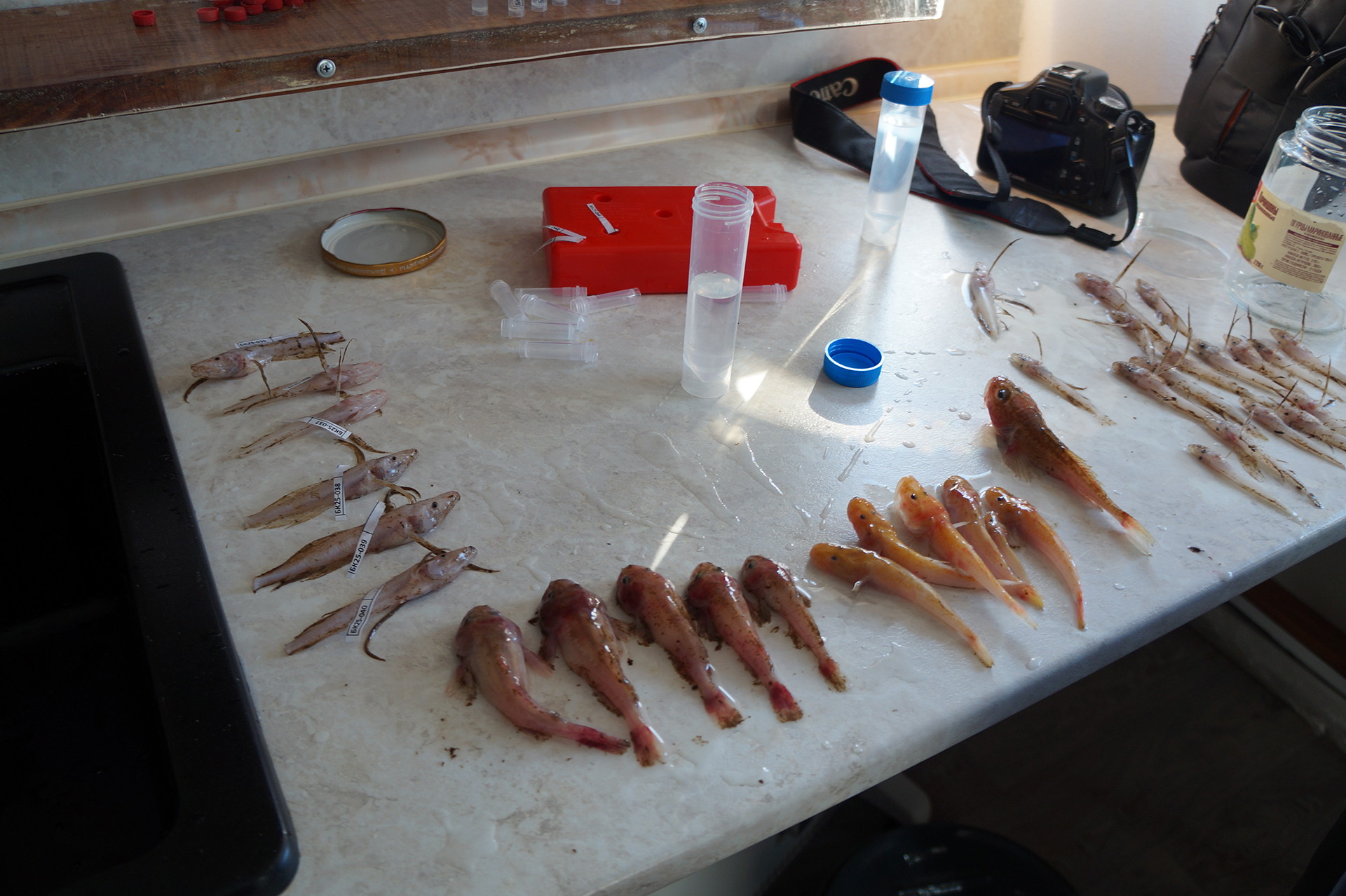 После лекции группа встретила научно-исследовательское судно (НИС) "Верещагин", с которого было совершено глубоководное траление с глубины 790 м. Участники познакомились с глубоководной фауной, включая амфипод (Amphipoda), голомянок (Comephorus) и широколобок (Pelvicachromis). Н.С. Мюге представил обзор адаптаций глубоководных рыб к давлению и темноте, Д.Ю. Щербаков — функциональные приспособления амфипод к жизни на глубине, а М.В. Райко собрал образцы микроспоридий (Microsporidia). Участники смогли рассмотреть образцы под бинокуляром.