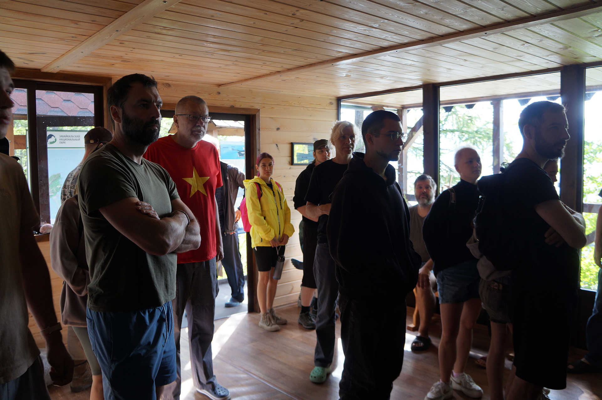 Утром группа совершила исследовательский поход по острову Тонкий (53.856551, 108.710976) в архипелаге Ушканьи острова. Участники наблюдали за лежбищем байкальских нерп (Phoca sibirica), изучая их поведение в естественной среде обитания. На берегу в литорали были собраны образцы мшанок (Bryozoa), предположительно представляющих редкий неописанный вид, что вызвало оживленные обсуждения.