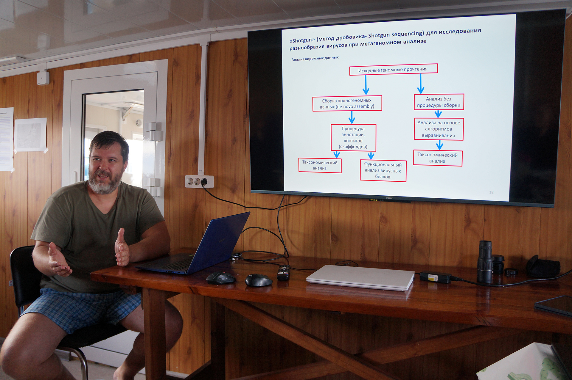 Ю.С. Букин представил лекцию "Исследование разнообразия вирусов в экосистеме оз. Байкал с помощью метагеномики shotgun". Лекция охватывала методологию метагеномики и shotgun-секвенирования, применяемые к вирусным геномам. Лектор обсудил программные пакеты для анализа данных, особенности работы с вирусной ДНК и результаты исследований на Байкале, включая обнаружение новых геномов.